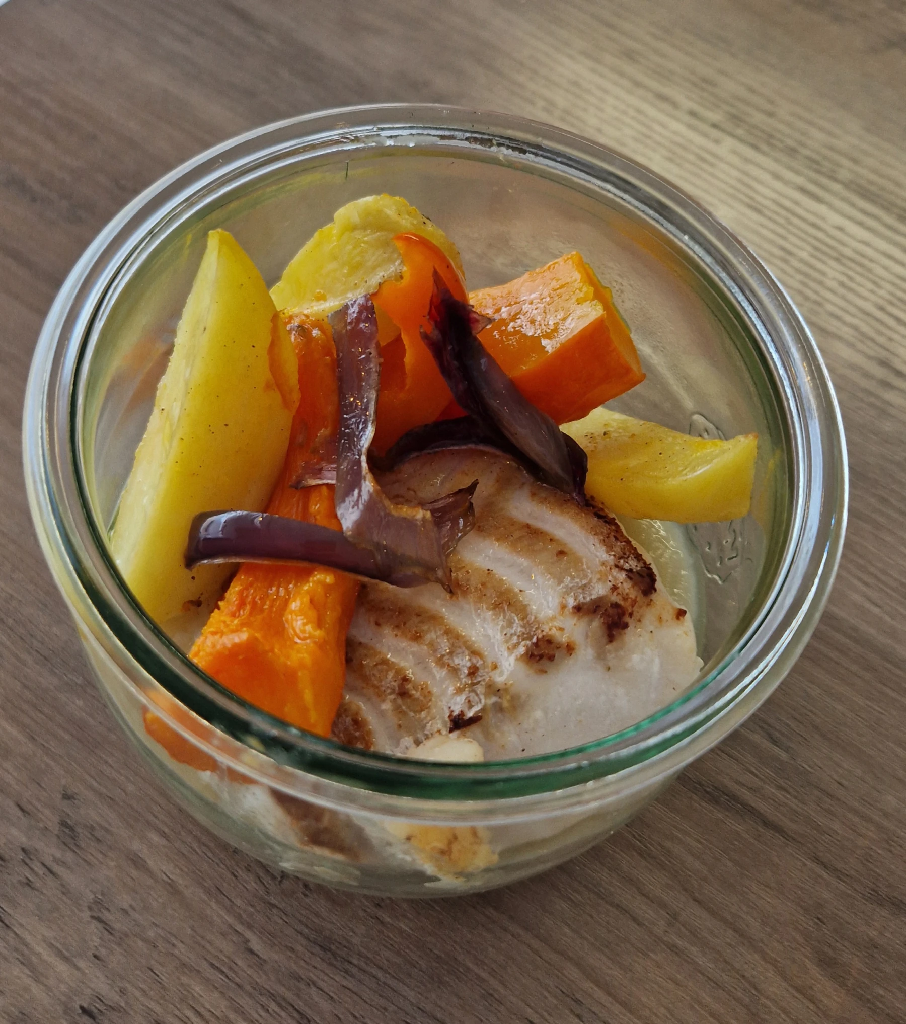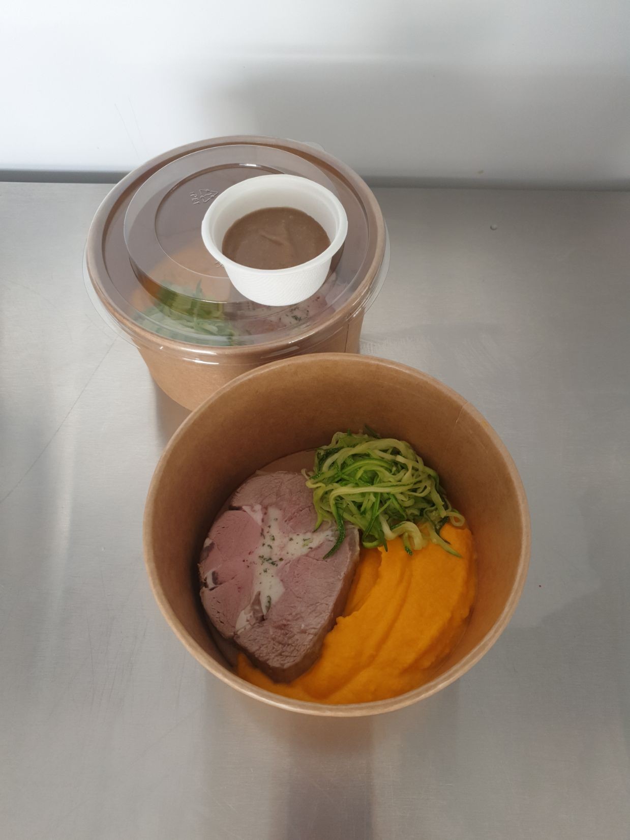 POULET RÔTI, ÉCRASÉ DE POMME DE TERRE ET SAUCE CHAMPIGNONS 9.00€